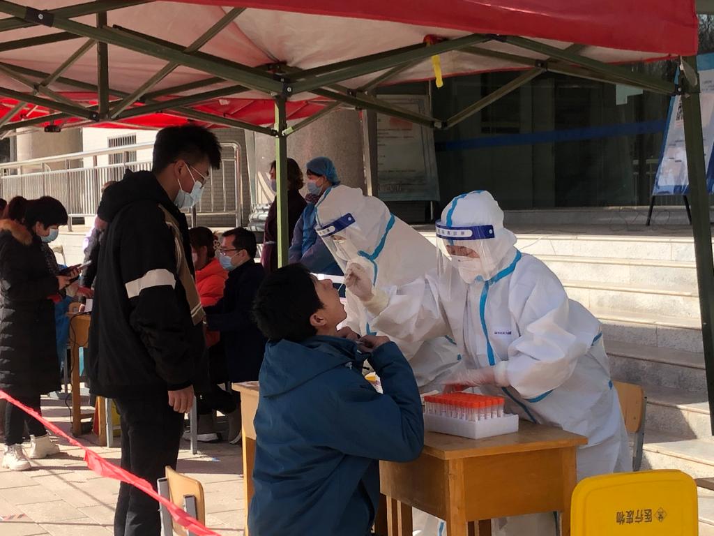 2月25日下午,根据分批安排,第一批教职工及员工抵达采样点,大家戴着口罩,井然有序排队等候,现场设有医疗保障区和隔离区,以备受检人员发热等异常情况的处理。党委副书记王福正视察采样现场,了解工作展开情况,他要求大家在做好自我防护的同时,努力工作、齐心协力完成好全员检测。
