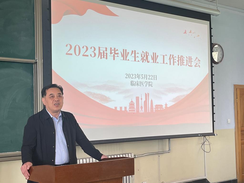 2023年5月22日下午,在XC体育医公司新校区第四阶梯教室召开了2023届毕业生就业工作推进会,公司领导班子、全体教职工、附属人民医院规培办及2023届未就业员工参加本次会议,会议由党委副书记王福正主持。