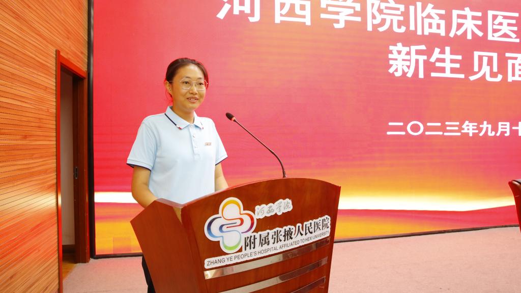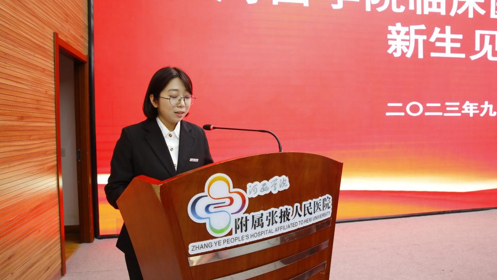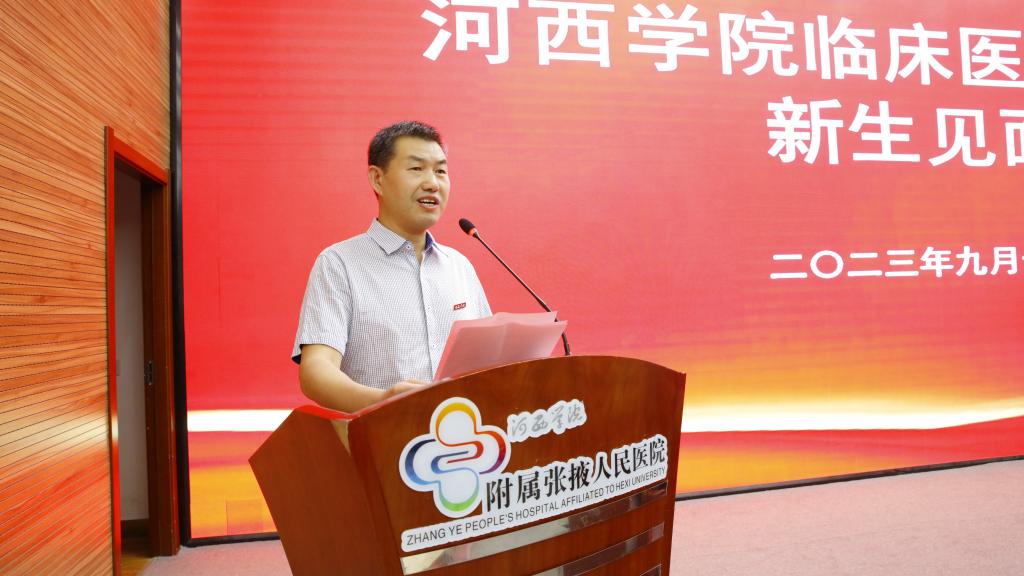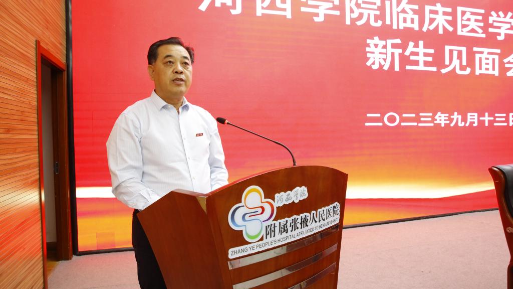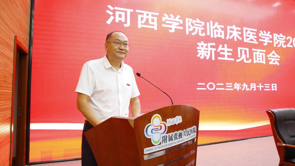 经理康东致欢迎辞,代表XC体育对2023级全体同学表示热烈欢迎和真挚祝福。介绍了公司、公司和附属张掖人民医院的发展历史和办学情况,并对同学们提出了希望和要求:一是要树立严谨思维,保持对医学的敬畏之心;二是树立积极学习意识,保持对医学的热爱之情,扎实开展学习实践;三是要树立团队合作意识,学会与他人协作,共同为患者健康贡献力量。
