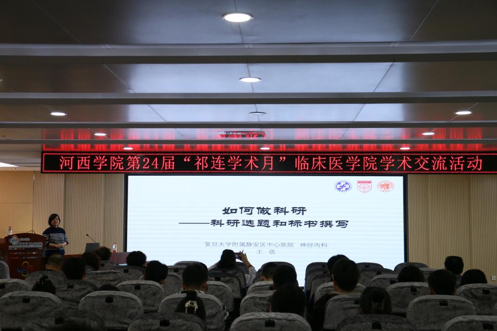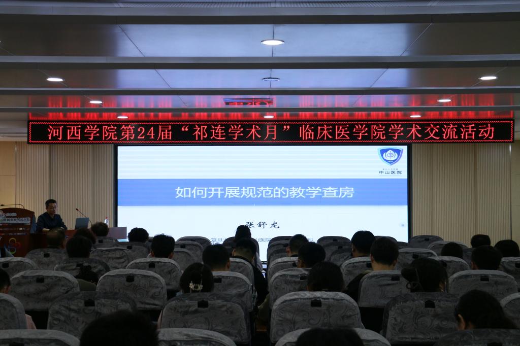 XC体育第24届“祁连学术月”活动启动之际,3月29日下午,XC体育在附属医院学术报告厅举行学术报告与交流,附属医院临床教师、公司办公室全体人员,实训中心、附属医院教研部主要负责人共110人参加。报告会由公司副经理主持。