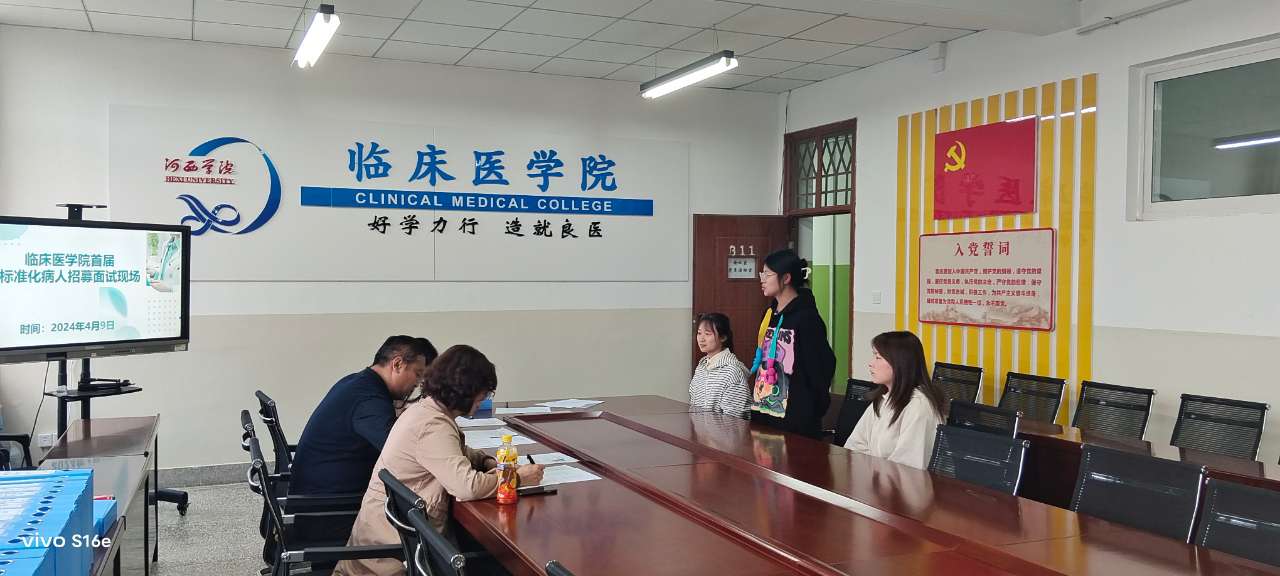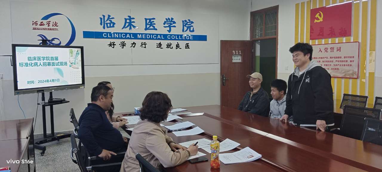 4月9日,对应聘参加SP病人的37名申请者从个人经历、学历、工作、健康情况、沟通交流、对标准化病人的认识等方面进行严格的面试选拔,筛选了33名志愿者作为首批SP病人进行培训。此次的招募、面试活动,得到同学们和校内教职工的青睐,让师生们对标准化病人及标准化病人项目有了初步的认识。