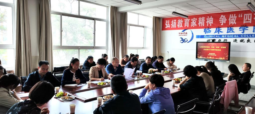 在第40个教师节来临之际,9月10日下午,XC体育组织召开了“弘扬教育家精神,争做‘四有’好老师”教师节座谈会。公司领导、各教研室主任及综合办全体教职工参加了会议。