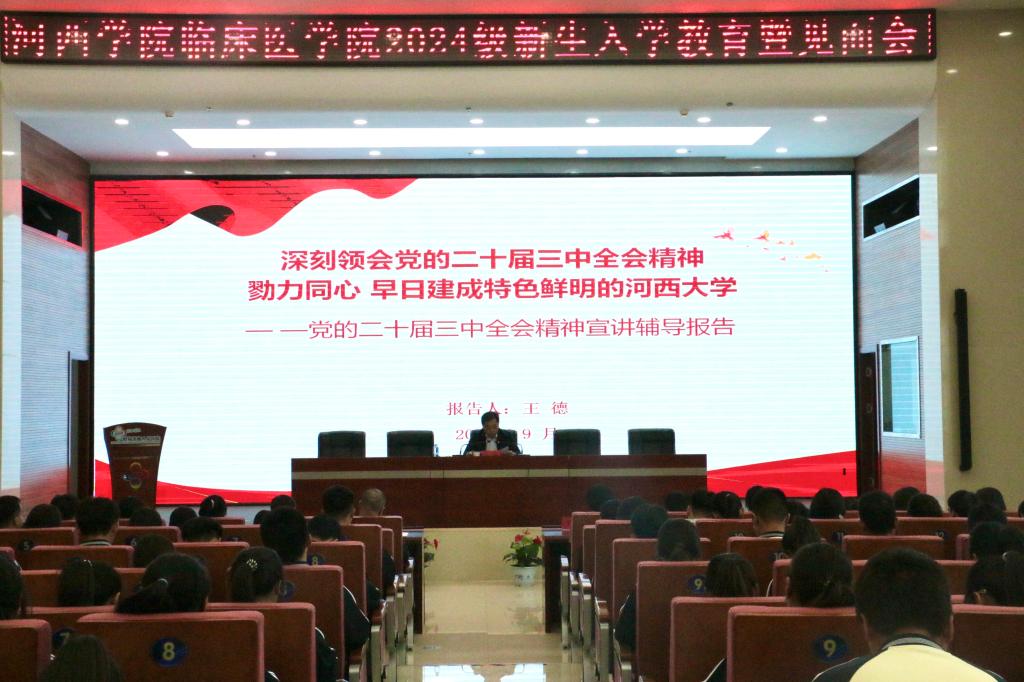 为深入学习贯彻全会精神,进一步统一思想,凝聚力量,推动公司高质量发展,进一步深化改革,加快实现建设特色鲜明的河西大学目标。9月28日,公司党委书记王德在XC体育附属张掖市人民医院门诊大楼24层会议室做了“深刻领会党的二十届三中全会精神,勠力同心,早日建成特色鲜明的河西大学”党的二十届三中全会宣讲辅导报告。2024级全体新生参加。