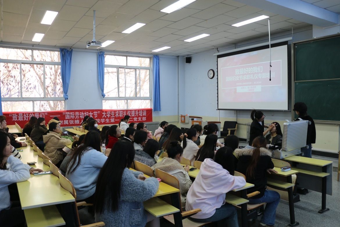 3月7日,员工第一、第二党支部主办的“致最好的我们——国际妇女节求职礼议培训”活动在医学新校区二阶教室举行。活动特别邀请了婉美新娘的专业老师进行现场授课。老师围绕求职妆容、求职搭配及面试礼仪等方面展开详细讲解,让同学们了解到如何更好的展现个人形象。提升了员工求职竞争力,帮助员工掌握形象管理技巧。