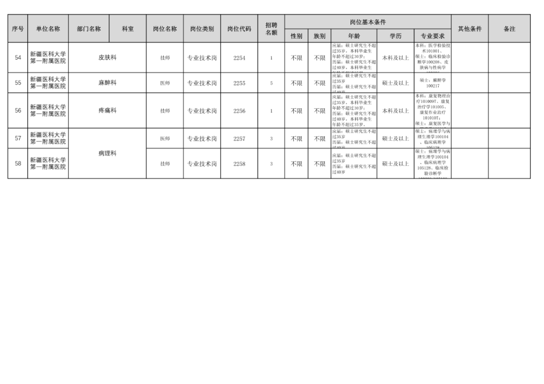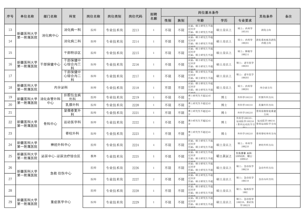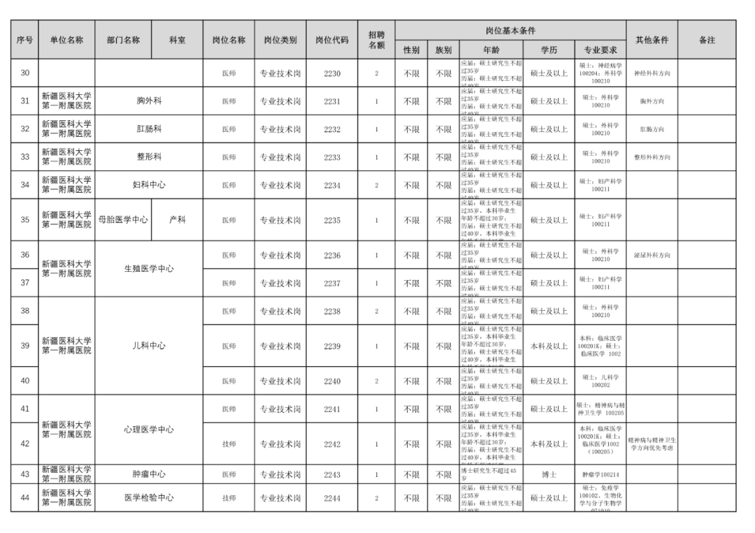 1.新疆医科大学第一附属医院2022年第一次面向社会公开招聘用人需求计划(编制外)