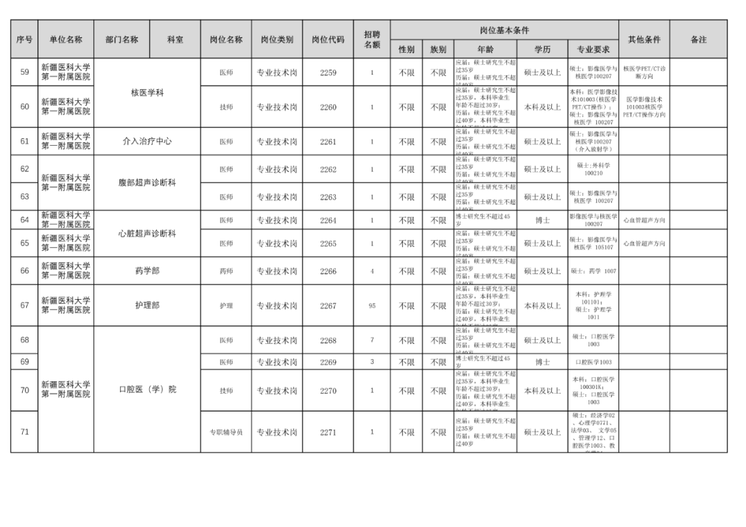 招聘工作全程接受新疆医科大学纪委、人事处及新疆医科大学第一附属医院纪检监察审计部监督。
