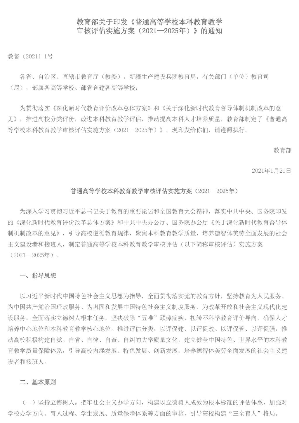 教育部关于印发《普通高等公司本科公司产品审核评估实施方案(2021-2025年)》的通知